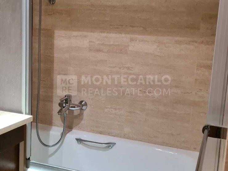 The apartment consists of an entrance (with armored door), a main room with equipped kitchenette and a marble bathroom.