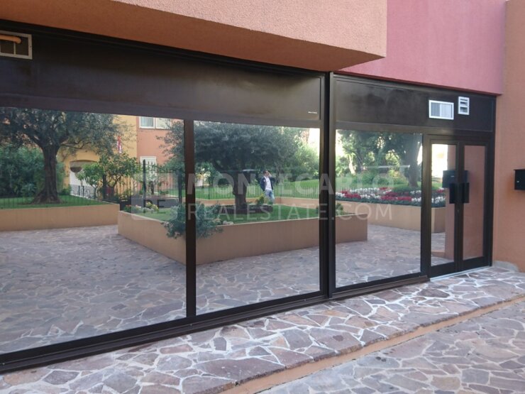 A proximité de la zone commerciale de Fontvieille, spacieux local commercial, actuellement cloisonné. Récemment rénové, grande vitrine linéaire de presque 7 mètres.