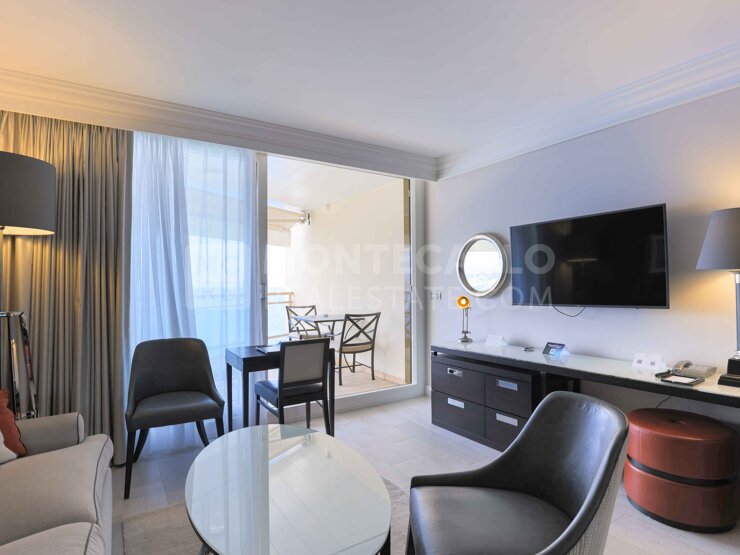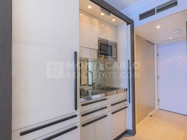 Beautiful furnished studio with sea view, of about 35m², in the heart of the prestigious Carré d'Or district, just two steps from the Casino of Monte-Carlo. This property benefits of exclusive services such as: daily cleaning, access to the swimming pool and gym of the residence. Parking is available for an extra fee.