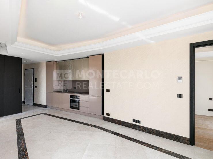We offer for sale a superb new 2-room apartment with a total surface area of 100.7sqm located on the top floor of the Belle Epoque-style Villa Ninetta residence, with turquoise balusters, hand-crafted moldings and travertine window frames.