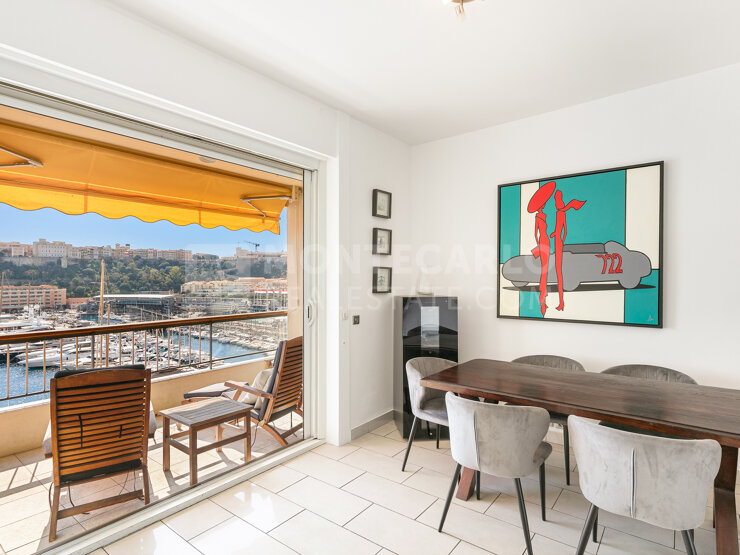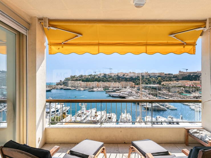 In the heart of Monaco, this sumptuous, spacious four-bedroom apartment offers spectacular views of Port Hercule and the legendary Monaco Grand Prix circuit