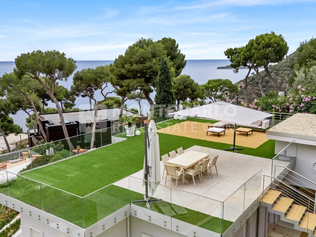 Benvenuti in questa splendida villa, una spaziosa residenza di 180 m² completata da un garage aggiuntivo di 35 m², in grado di ospitare due veicoli indipendenti. La suite padronale vanta oltre 20 m² di eleganza e offre una vista mozzafiato sul mare, mentre la proprietà dispone di altre tre camere, una delle quali può fungere da zona spogliatoio. Un'incantevole camera soppalcata presenta anch'essa una vista pittoresca sull'oceano.