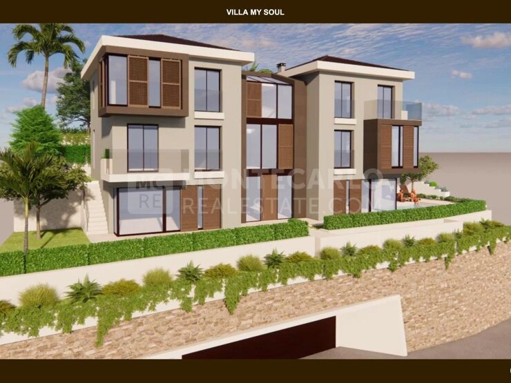 Roquebrune Cap Martin, limite Principauté de Monaco, projet villa 400 m2 garage 100 m2, piscine Projet de luxueuse villa avec permis accepté – Vue mer panoramique