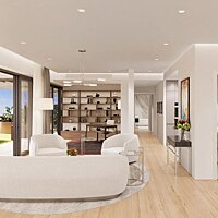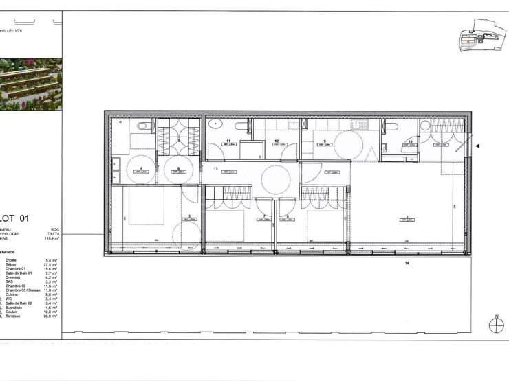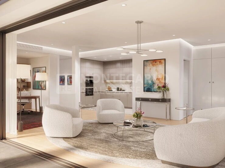 L’appartement, baigné de lumière grâce à ses larges baies vitrées orientées sud, bénéficiera d’une vaste terrasse végétalisée, séjour de 27,5 m², cuisine indépendante, trois chambres dont une suite avec salle douche privative, une seconde salle de douche, deux WC, un espace buanderie et un dégagement optimisé par des rangements.