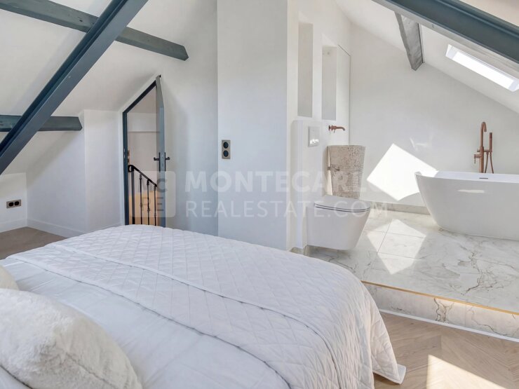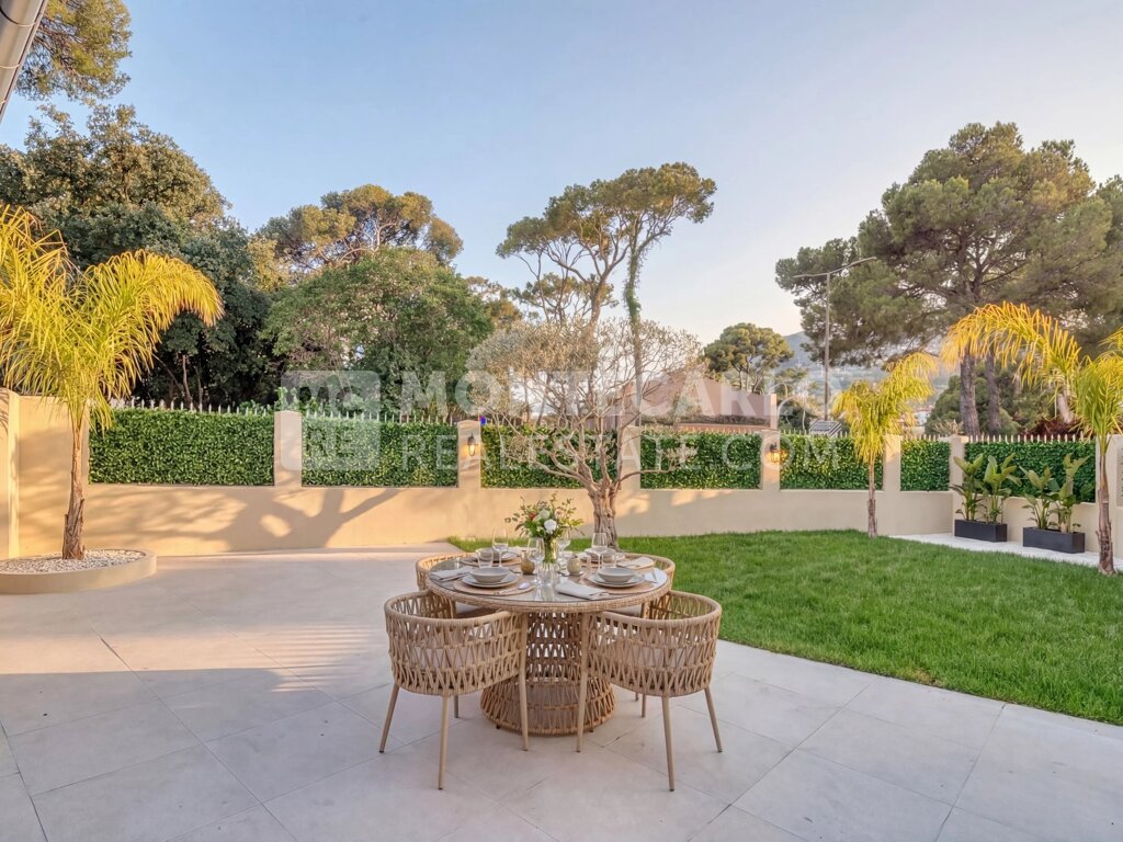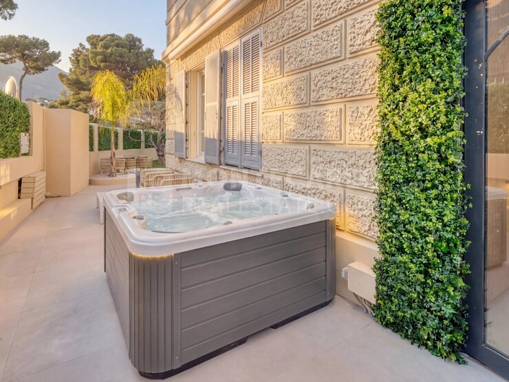 La villa de 194,24 m2 (165.54+28.70 m2), offre de beaux volumes et de remarquables hauteurs sous plafond, avec une entrée majestueuse et escalier en marbre, un vaste séjour avec salon et salle à manger de 56 m2, ouvert sur une cuisine moderne équipée, ainsi que 5 chambres raffinées de 32 m2, 24 m2, 15 m2, 15 m2 et 14 m2), dont 2 avec salle de bains ou salle de douche.
