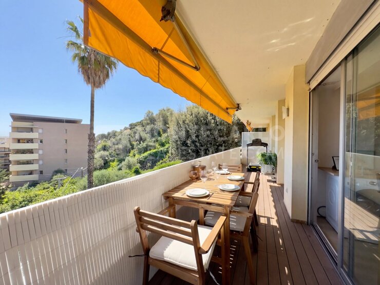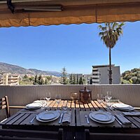 Le prolongement de la pièce de vie et des chambres vers une terrasse de 14 m² vous permet de profiter d'une vue panoramique exceptionnelle mêlant les nuances bleutées de la Méditerranée aux reliefs des montagnes environnantes tout en disposant de la praticité d'un garage avec ouverture électrique et d'un cellier à l'étage d'habitation pour un quotidien facilité au sein de cette résidence idéalement placée à proximité immédiate de la ville et de ses jardins.