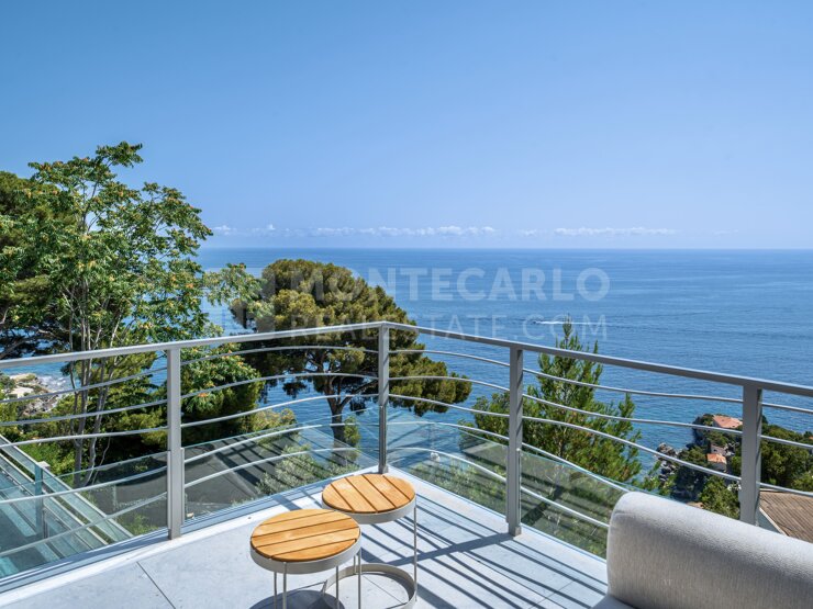 CAP D'AIL - AFFITTO ANNUALE ARREDATO: all'ingresso di Monaco, incredibile villa contemporanea che offre una vista mozzafiato sul mare e una superba piscina con idromassaggio.