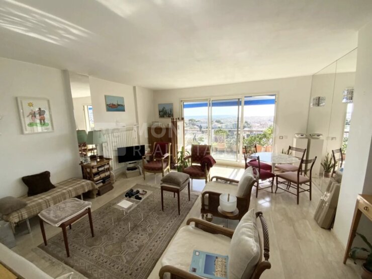 APPARTAMENTO NIZZA - TRILOCALE CIMIEZ - Situato all’ultimo piano di una residenza di prestigio con servizio di portineria, questo appartamento di tre locali di 80,27 m² traversante offre una vista panoramica sul mare e sulla città, oltre a una bella terrazza esposta a sud.