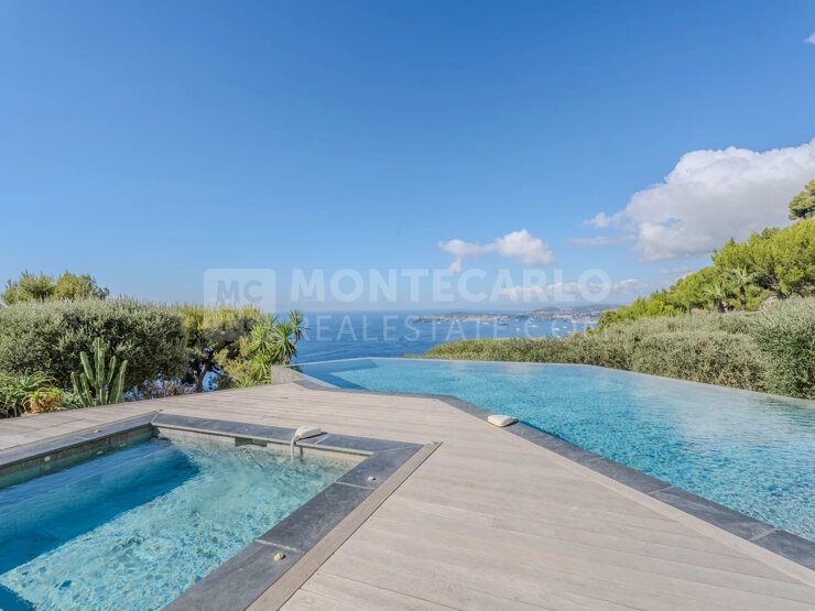 Con una vista panoramica su Saint-Jean-Cap-Ferrat, il Mar Mediterraneo e il Principato di Monaco, la proprietà affascina per la sua eleganza e la sua atmosfera unica.