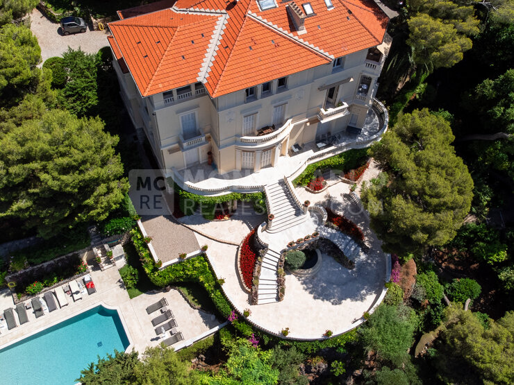 Questa proprietà unica si estende su tre livelli e offre un ambiente di vita eccezionale nel cuore di una tenuta privata e sicura, con viste mozzafiato sul Mar Mediterraneo e sul Principato di Monaco.
