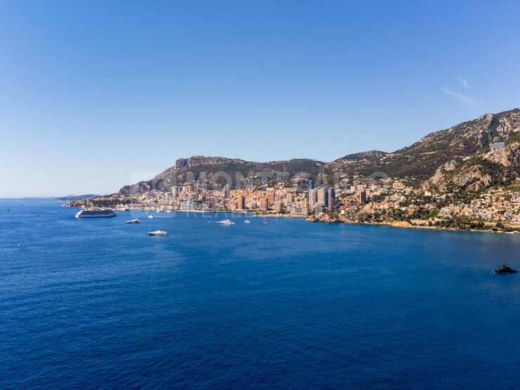 Al primo piano, un ampio e luminoso soggiorno si apre su una grande terrazza panoramica, che offre una vista spettacolare su Monaco e sul mare. Una cucina chiusa, una camera da letto e un bagno completano questo elegante spazio abitativo.