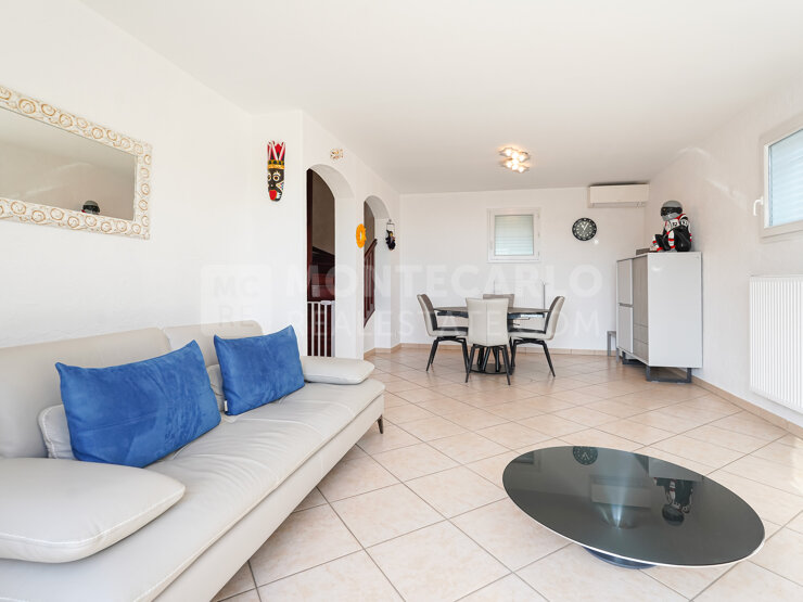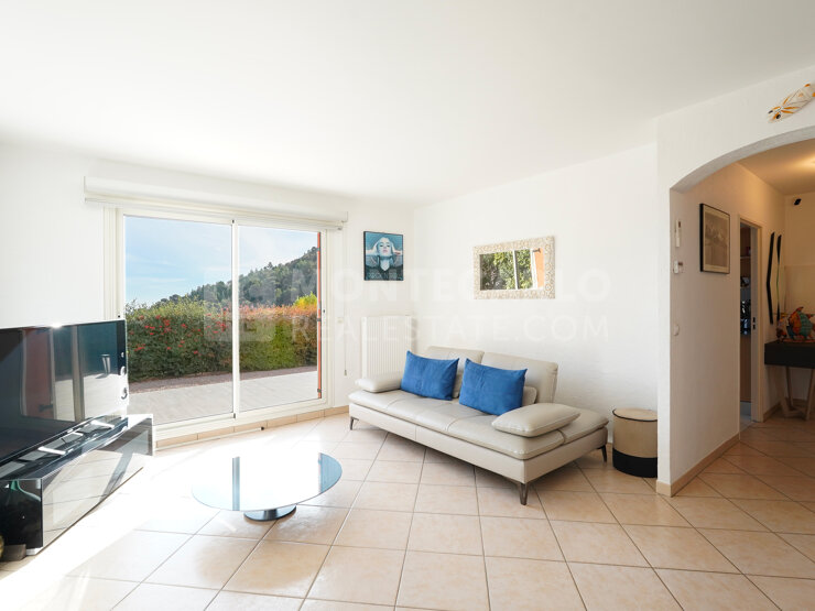 Affascinante casa di 86 m² in perfette condizioni, immersa in un ambiente tranquillo con vista libera sul mare e sulle montagne, terrazza, giardino e accesso a una piscina in un condominio di lusso e vicino al villaggio.