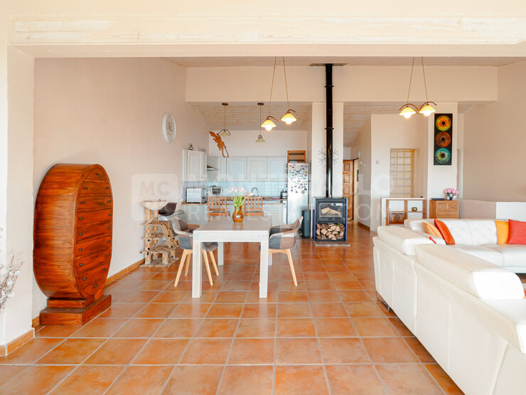 - Al primo livello: un ampio soggiorno che si apre sul mare, una cucina attrezzata, un ufficio (possibilità di trasformarlo in una camera da letto) e un bagno separato.