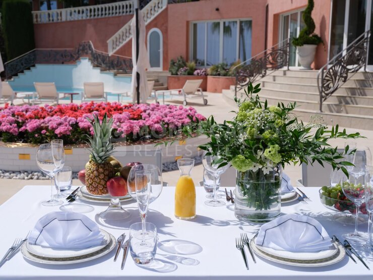 All'esterno, oltre le grandi distese delle terrazze solarium, c'è un ampio patio pavimentato, ideale per una festa o un barbecue accanto alla grande piscina intagliata di 68 m2.