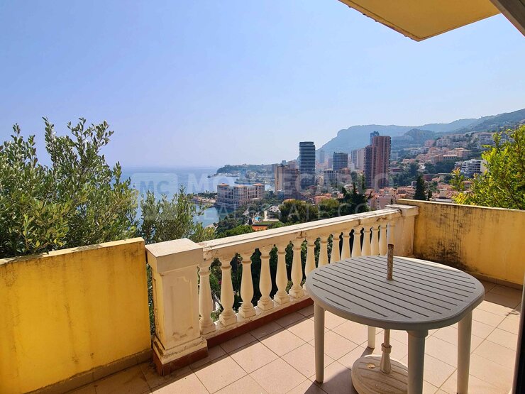 L'ampia terrazza, accessibile dal soggiorno e dalla camera da letto, offre un'eccezionale vista panoramica sul Principato e sul suo Country Club. La camera da letto si apre su un incantevole giardino privato di circa 20 m², perfetto per godersi le giornate di sole o per mangiare all'aperto.