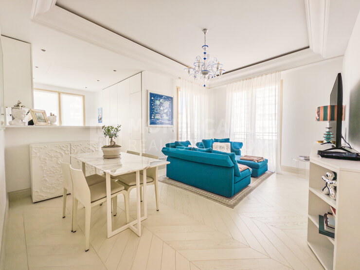 Niché dans le cœur animé du quartier de la Condamine, cet exquis appartement de 136 m² avec quatre chambres à coucher dans la prestigieuse Villa Portofino offre un mélange d'élégance et de confort moderne. La résidence, connue pour ses constructions récentes et ses équipements luxueux, vous accueille avec un hall d'entrée spacieux menant à un séjour lumineux qui s'ouvre sur une loggia sereine. La cuisine ouverte entièrement équipée est parfaite pour les amateurs de cuisine. La chambre principale dispose d'une salle de bains privative, tandis que deux autres chambres sont dotées de leur propre salle de douche. Une salle de bains pour les invités est à la disposition des visiteurs.