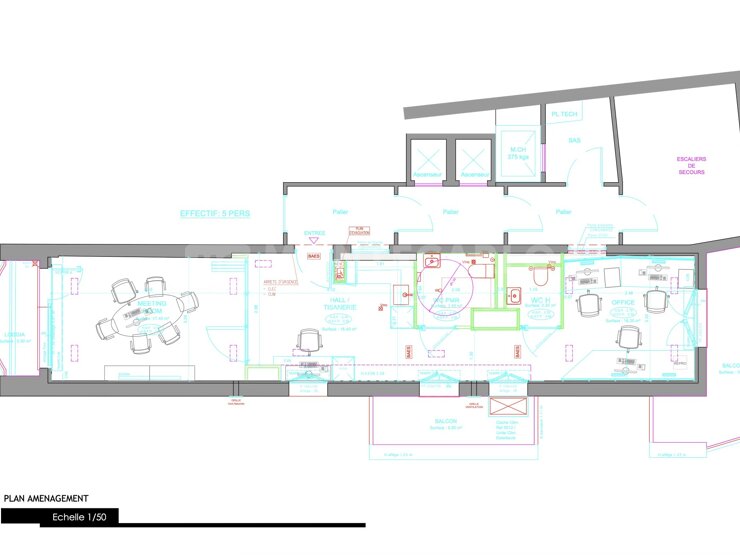 Actuellement aménagé en bureau (hall, salle de réunion, deux bureaux, WC classique et WC PMR), cet appartement offre un fort potentiel d’aménagement, dans une résidence avec ascenseur, concierge et fibre optique.