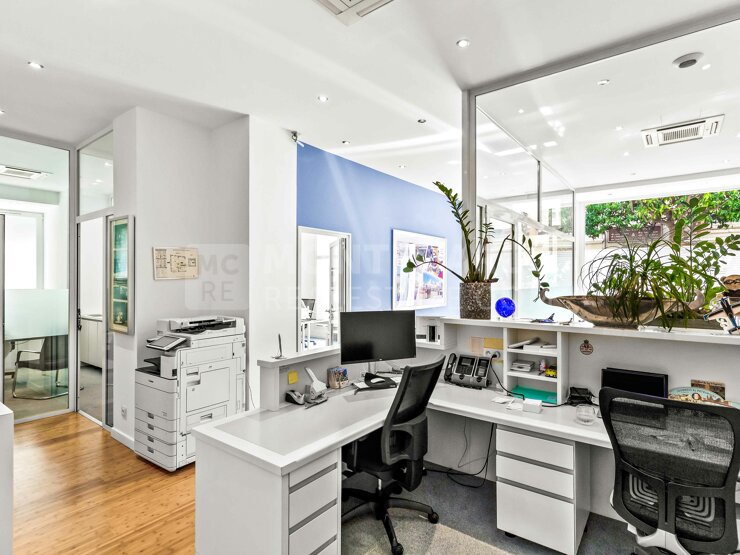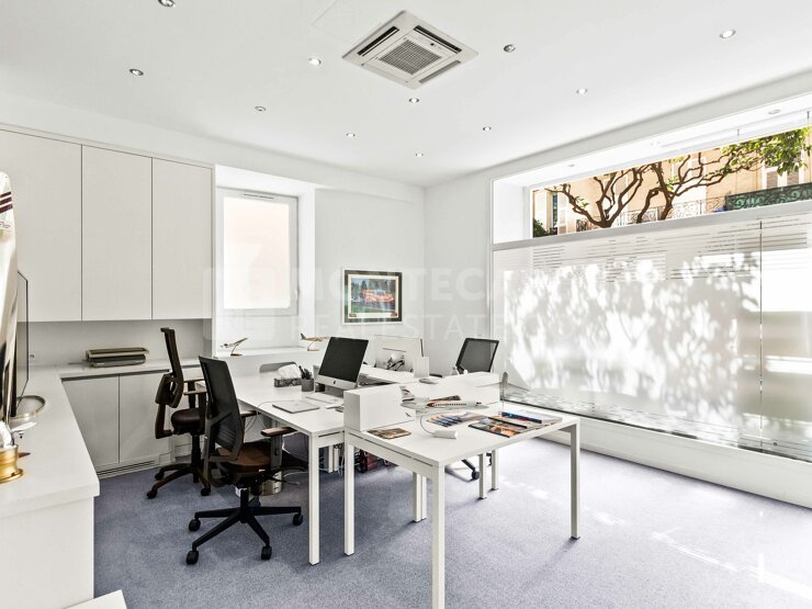 A pochi passi dalPort Hercule, situato al piano terra di un palazzo storico nel quartiere molto in voga, La Condamine, questo locale recentemente ristrutturato e interamente climatizzato, gode di una bella luminosità e di volumi generosi. E' composto da un ingresso con reception che serve 6 uffici separati e una cucina. Al piano inferiore si trovano un archivio e una toilette per uomini e donne.