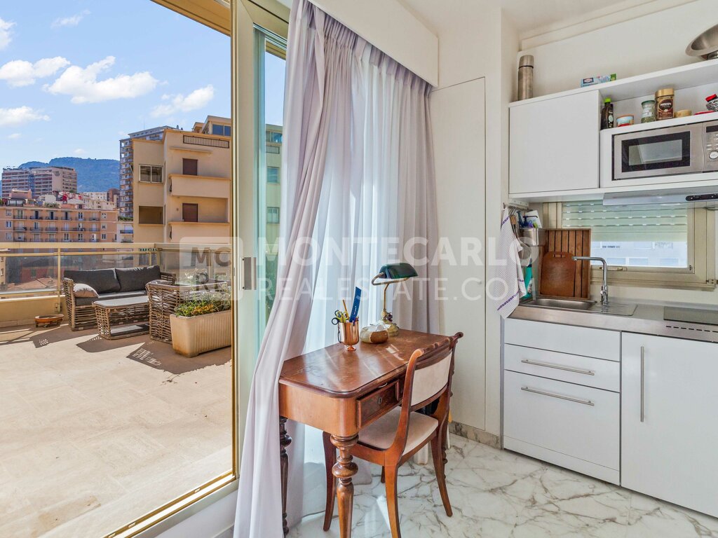 Situato in un palazzo con concierge, questo monolocale presenta il vantaggio di affacciare su una terrazza soleggata e con vista mare.
