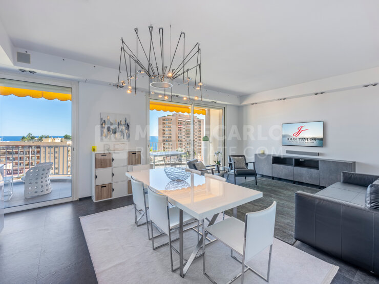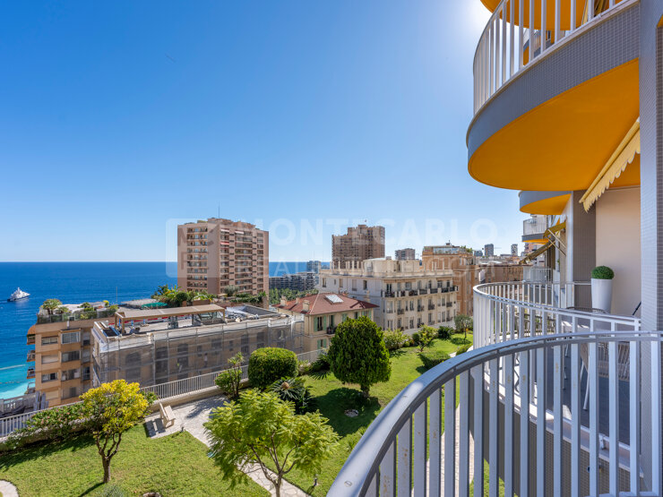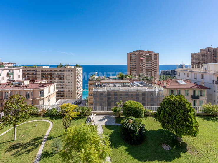 Situato nella prestigiosa residenza Les Abeilles, a pochi passi dal Boulevard des Moulins e dalle spiagge del Larvotto, questo raro indirizzo seduce con il suo giardino privato, il suo servizio di portineria e il suo raffinato ambiente abitativo. L'appartamento, completamente ristrutturato con servizi di alta gamma, offre volumi superbi e una vista panoramica sul mare dal suo ampio terrazzo.