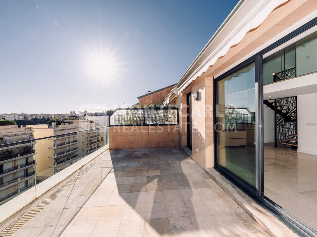 Elegante attico ristrutturato con vista aperta e redditività , doppia esposizione, 2/3 camere, 2 parking e 1 cantina nel cuore de La Condamine