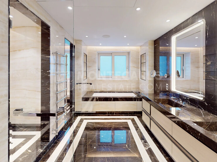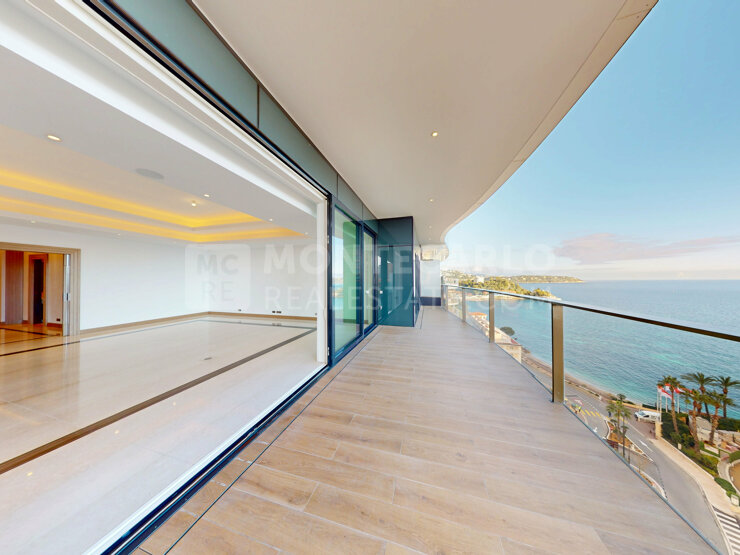 Appartamento eccezionale nella prestigiosa nuova residenza Bayhouse, situato su un piano molto alto, immerso nella luce e godendo di una spettacolare vista sul mare. Completamente su un unico livello, questa proprietà rara ed esclusiva si distingue per un'eccezionale altezza del soffitto di 3,5 metri, unica nella residenza, che offre volumi impressionanti e una sensazione di spazio ancora più prestigiosa.