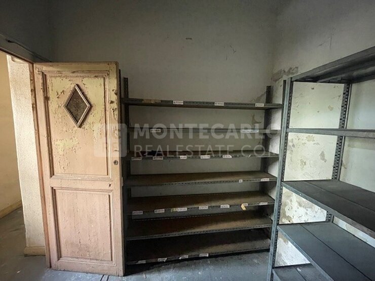La cantina materializzata nei piani sottostanti ha una superficie di circa 8 m². Beneficia della luce naturale che passa da una piccola finestra in alto.