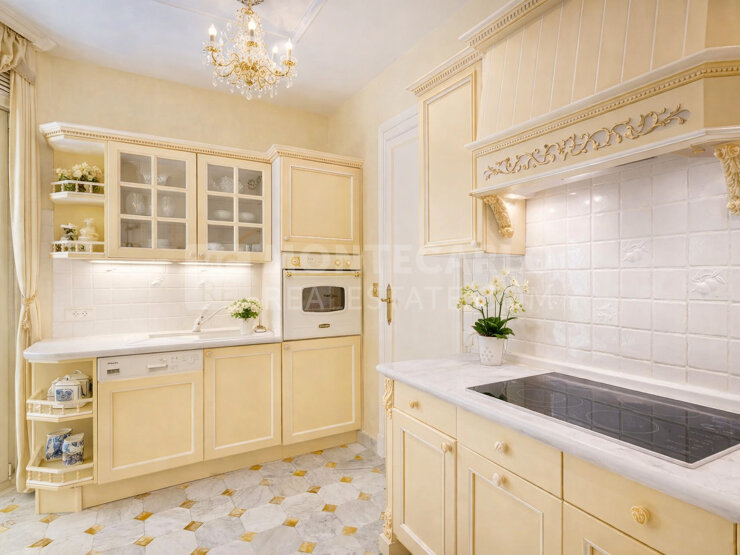 Al piano terra: un maestoso ingresso, un doppio soggiorno, una cucina completamente attrezzata e un bagno per gli ospiti. Un ascensore interno consente di accedere direttamente al 1° livello.