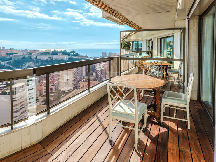 Situato nella prestigiosa residenza Beverly Palace, questo appartamento traversante offre una spettacolare vista su Monaco e sul mare. Spazioso e luminoso, vanta ampi volumi e finiture di alta qualità.
