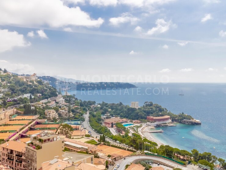 Appartamento di alto standing situato ad un piano alto. La Résidence Parc Saint Roman, molto apprezzata a Monaco, offre servizi di lusso quali portineria, piscina, sala fitness, sauna .
