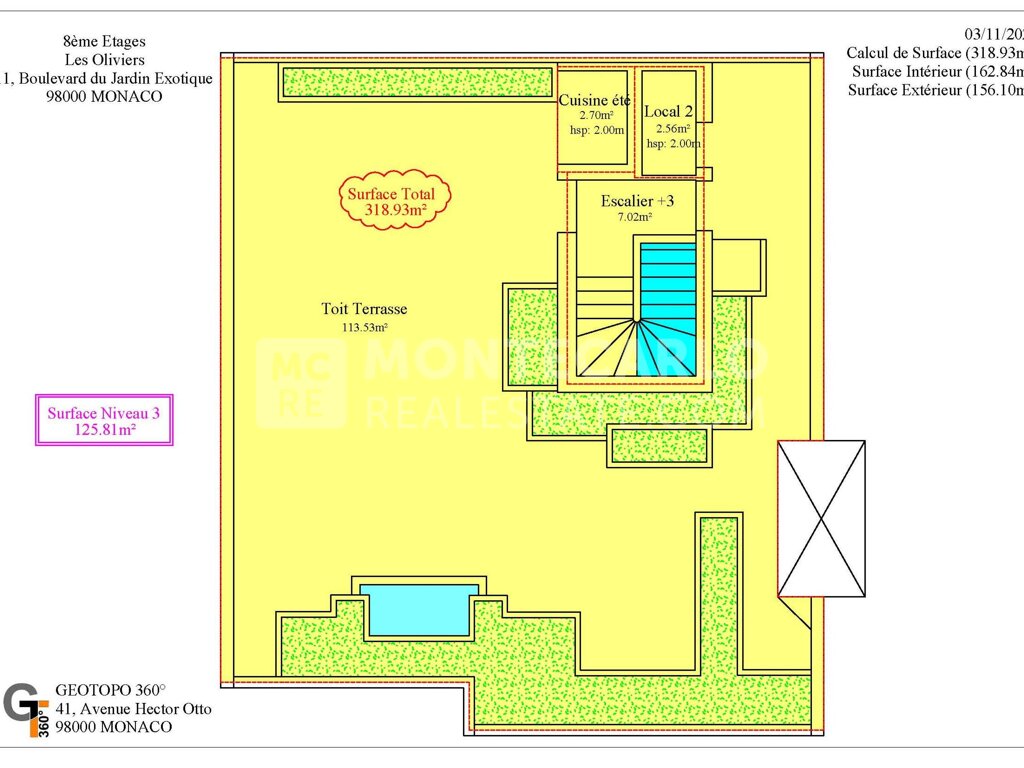 Questo splendido attico su tre livelli, con una superficie di 319 m² di cui 156 m² di terrazza, offre ampi spazi e una splendida luminosità.