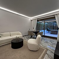 L’appartamento si presenta luminoso, con soggiorno e camera valorizzati da ampie vetrate che creano continuità con l’esterno. La camera dispone di bagno en-suite e cabina armadio, mentre la cucina è separata e completamente attrezzata.