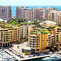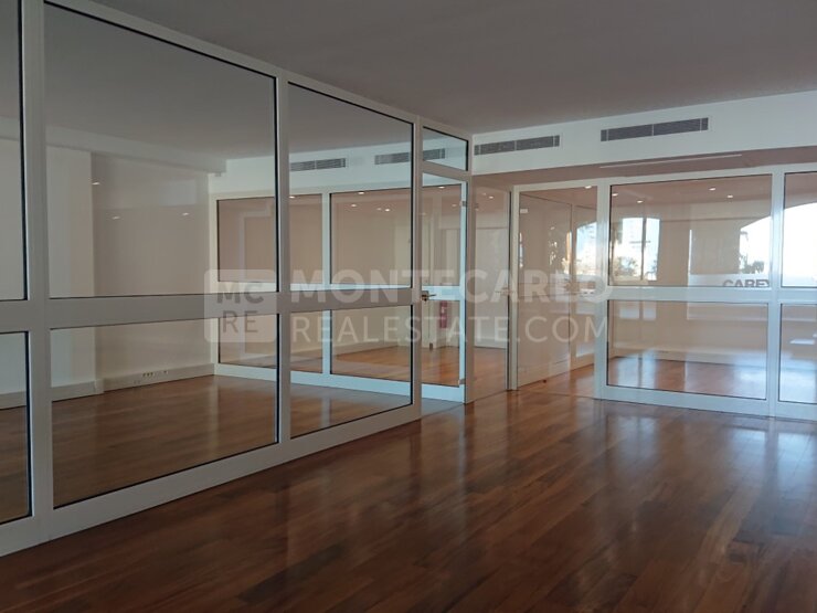 Grande ufficio con grandi vetrine al piano terra dell'edificio Raphael nel porto del tranquillo quartiere di Fontvieille.