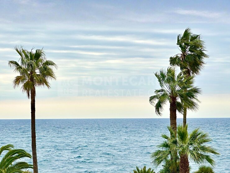 L'appartamento è esposto a sud e gode di una bella luce e dell'aria fresca del mare. L'intera proprietà è stata completamente e splendidamente ristrutturata in stile elegante, contemporaneo e di molto buon gusto. Nessun dettaglio è stato trascurato e ogni parte di questa splendida casa è stata realizzata con i materiali più pregiati, come i rari marmi e i pavimenti in legno naturale. L'interno è contemporaneo, con camere spaziose e splendide terrazze chiuse. Completa la proprietà un ampio ingresso che conduce ad un soggiorno con cucina a vista completamente attrezzata. La camera da letto principale è spaziosa e comprende un piccolo ufficio con vista sui giardini di palme e sul mare. Ci sono 2 ulteriori camere da letto con bagno privato, tutte con ampio ripostiglio a muro e un ufficio/4a camera da letto con una grande cabina armadio. Tutte le camere sono arredate con gusto, armadi e armadi su misura rivestiti in pelle e altre finiture su misura. La proprietà comprende anche una lavanderia ed è completamente climatizzata.