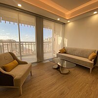 L'appartement, entièrement rénové avec des matériaux de qualité, est composé d'un séjour lumineux avec une cuisine, ouverte et entièrement équipée, prolongé par une terrasse avec une très jolie vue sur les environs et la mer en arrière-plan.
