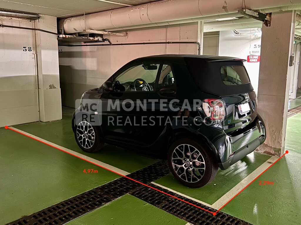 Place de parking située dans la résidence Le Botticelli, quartier Fontvieille – Place des Oliviers, bénéficiant d’un service de sécurité 24h/24 et 7j/7.
