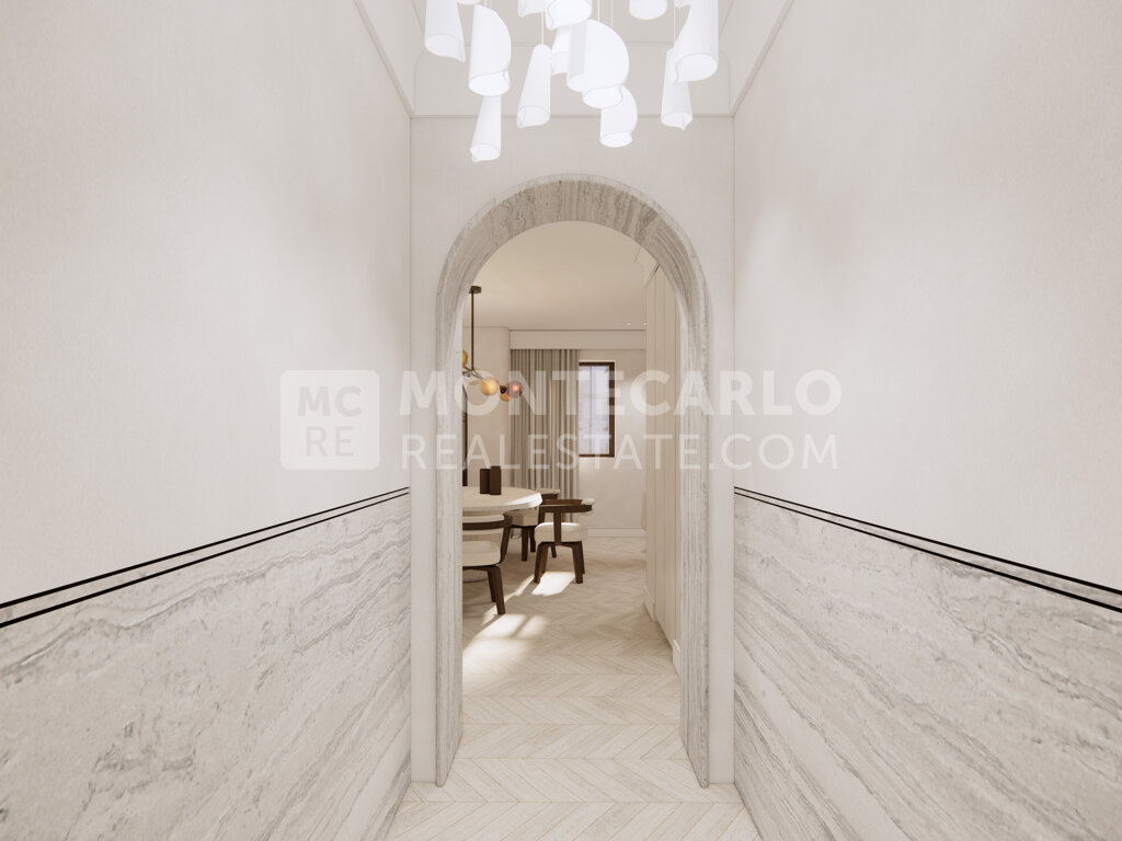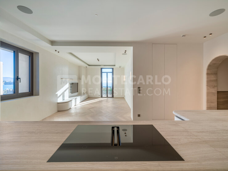 Dès l’entrée, un beau hall d’entrée mène à un magnifique double salon-salle à manger, baigné de lumière naturelle. L’espace de vie se fond parfaitement dans une cuisine moderne et ouverte, entièrement aménagée et équipée d’appareils électroménagers des marques prestigieuses. Chaque finition a été choisie avec un soin exceptionnel, ce qui permet d’atteindre un niveau de qualité rarement vu en Principauté.