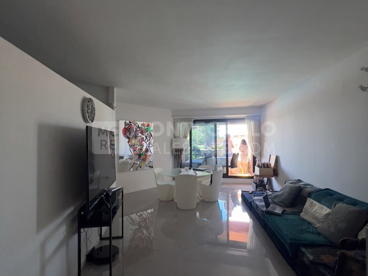 Ideale pied-à-terre, vista mare, situato vicino al Country Club, al Monte-Carlo Beach Club e alla Scuola Internazionale, in uno degli edifici più belli del Principato, beneficiando di un magnifico parco con area fitness, piscina, sauna, servizio di portineria 24 ore su 24, Snack bar aperto tutto l'anno, giardino per cani. Vicino a tutti i negozi e ai trasporti pubblici. Accesso diretto alle spiagge del Larvotto con l'ascensore. Si compone di ingresso, soggiorno che si apre su una terrazza con vista mare e piscina, cucina indipendente completamente attrezzata, zona notte, ripostiglio, 1 bagno con gabinetto. Un parcheggio e una cantina