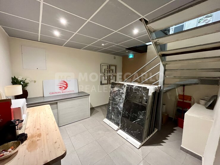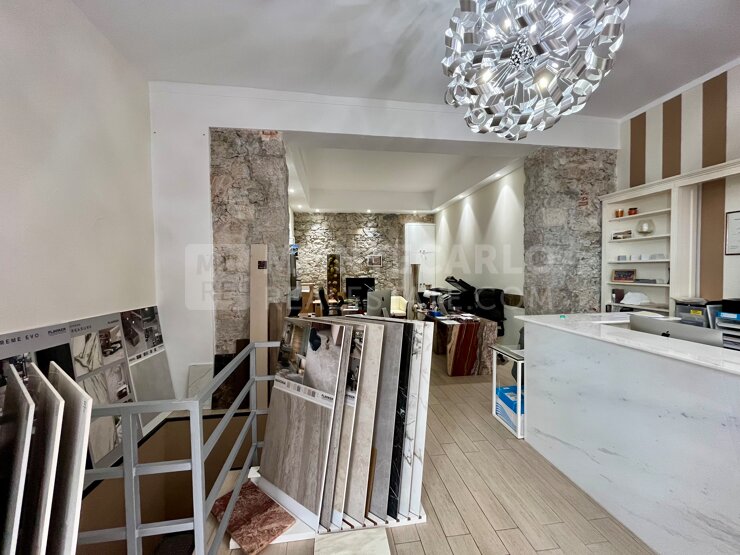 Questo grande locale con vetrina, situato in Rue de la Turbie nel cuore di Condamine, è distribuito su due livelli.