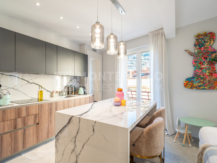 L’immobile è stato completamente ristrutturato e offre 110 mq di spazio interno, oltre a una terrazza di 20 mq con vista sul Boulevard Princesse Charlotte.