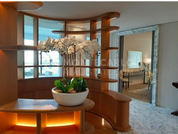 Magnifico duplex nella residenza di lusso, One Monte-Carlo nel cuore dei giardini del Casinò, superficie abitabile di 410 m², con balconi che circondano l'appartamento e offrono una vista mozzafiato sulla Rocca e sul mare.