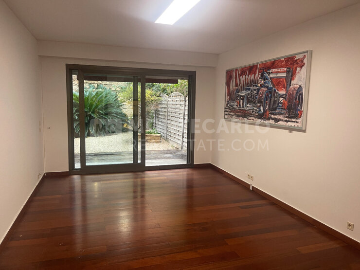 Quartiere Carré d'Or, edificio Le Mirabel, ampio monolocale con terrazza e giardino. Cantina e parcheggio inclusi nell'offerta.