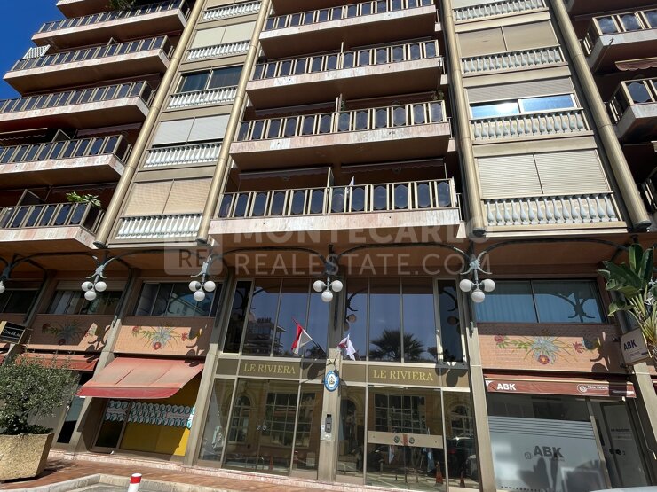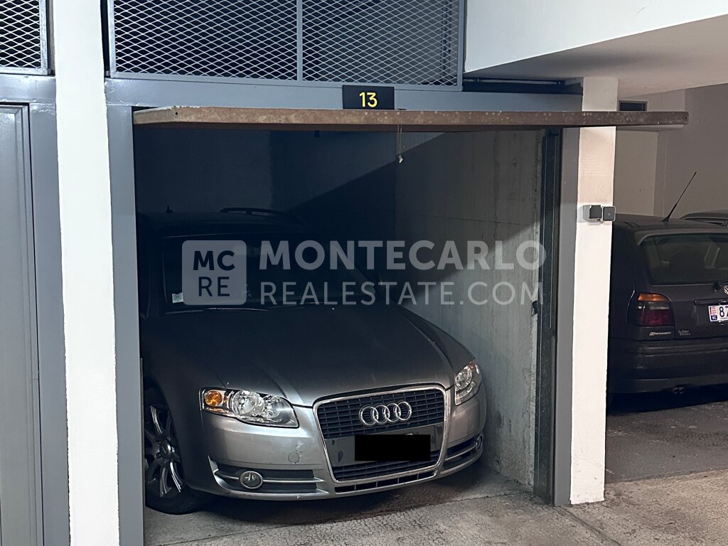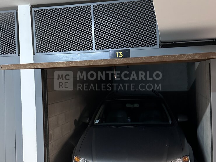 Box chiuso situato al primo piano interrato del residence Riviera Palace, nel quartiere Carré d'Or, vicino a Place de la Casino e ai suoi negozi.