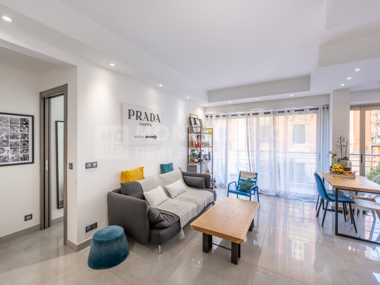 Appartamento luminoso e completamente ristrutturato con materiali di alta gamma, situato a pochi passi da Port Hercules, offre una vista sulla Rocca e sulla partenza del Gran Premio.