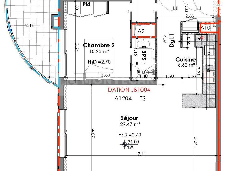 Questo appartamento di 3 locali in vendita, situato al 12 ° piano dell'edificio A, è composto da un soggiorno/sala da pranzo che si apre su un balcone (esposto a sud), una cucina completamente attrezzata, due camere da letto che si aprono su un balcone (esposto a sud-ovest), un bagno, un bagno con doccia, una lavanderia, una toilette separata e un sacco di spazio incorporato.