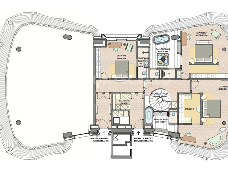 Magnifico duplex che offre una superficie abitabile di 410 m², con balconi che circondano l'appartamento.