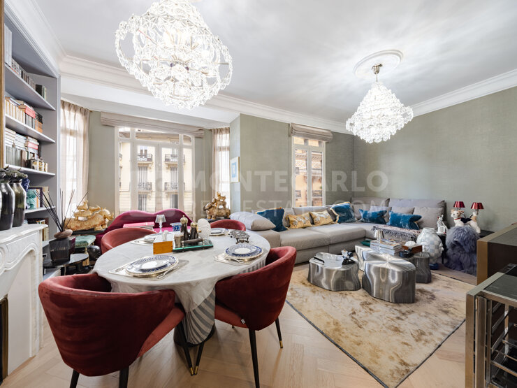 Magnifico appartamento ristrutturato e arredato da uno studio di architettura rinomato del Principato. Situato in una residenza di lusso e apprezzata. Ideale per una famiglia, vicino a tutti i servizi, scuole pubbliche e internazionali e alle spia...