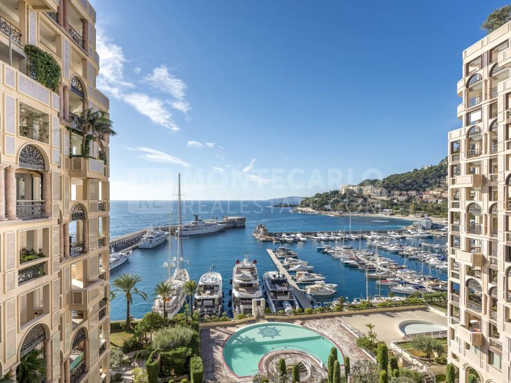 Situé au Port Hercule dans un immeuble de prestige avec conciergerie, ce superbe appartement entièrement rénové dispose de matériaux de grande qualité. Il se compose d’un hall d’entrée,...