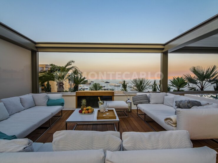 Duplex con rooftop, vicino al Casinò di Monte Carlo. Questo luminoso appartamento di 5 locali offre una splendida vista mare su Port Hercule e i suoi interni raffinati lo rendono un luogo piacevole in cui vivere. L'immobile è composto da un soggio...