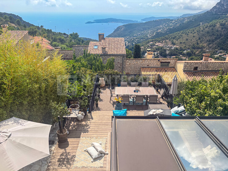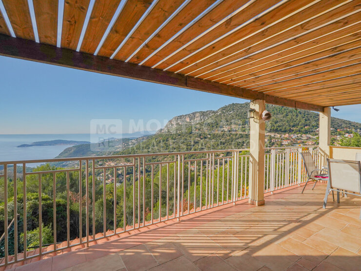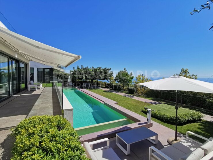 La Turbie, à 5 minutes à pied du village et à 10 minutes de Monaco, dans une résidence sécurisée, au calme, jolie maison mitoyenne de 110 m² élevée sur deux niveaux avec une magnifique vue mer bénéficiant d'un bel ensoleillement grâce à son exposi...